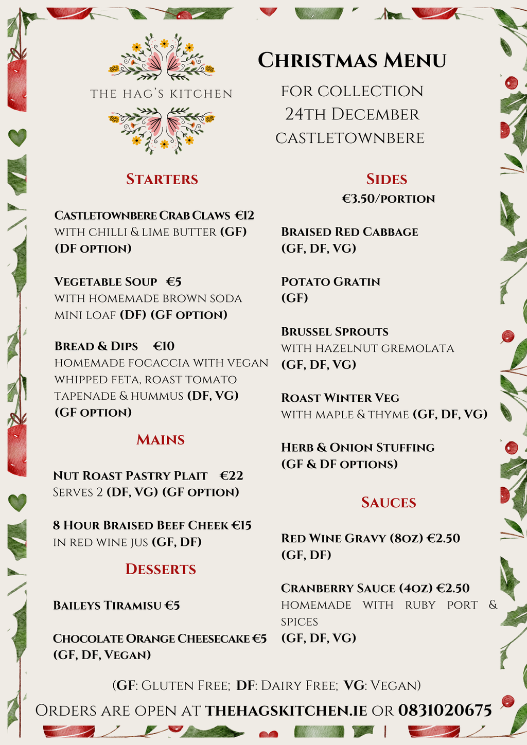 Orders will be available for collection from the shop in Castletownbere on Chirstmas Eve morning.
